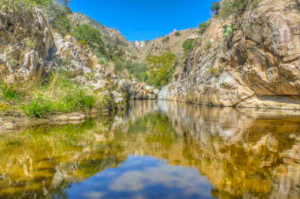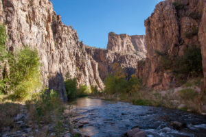 The 11-mile-long Aravaipa Canyon is about 50 miles northeast of Tucson and is very popular for hiking because of its diverse surroundings. The trail leads