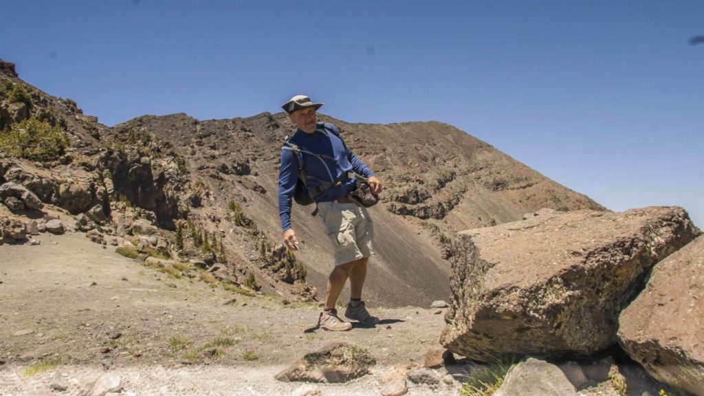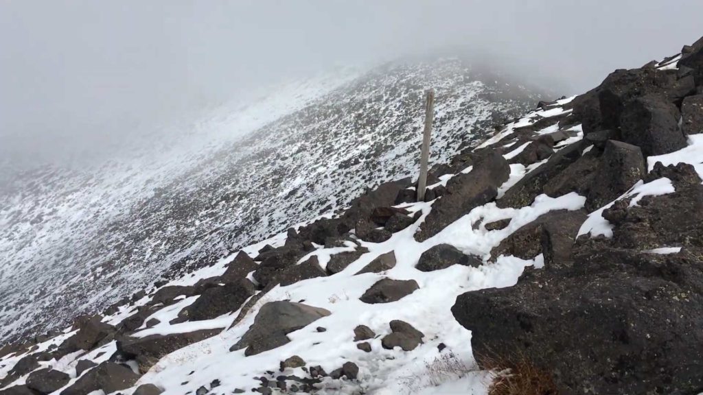 During the second ascent in 2008 with John, Sandy and John, we encountered weather difficulties. As we climbed, the temperature dropped and the weather changed. It became windy, it was raining, the terrain was slippery, and at higher altitudes the rain turned to snow.