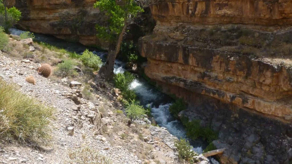 With its deep gorges and sharp edges it is part of the Colorado River Basin and stretches for 277 miles.